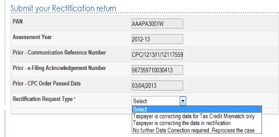 5 − On selecting the option ‘Taxpayer Correcting Data for Tax Credit mismatch