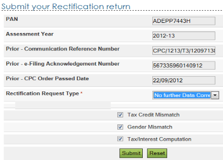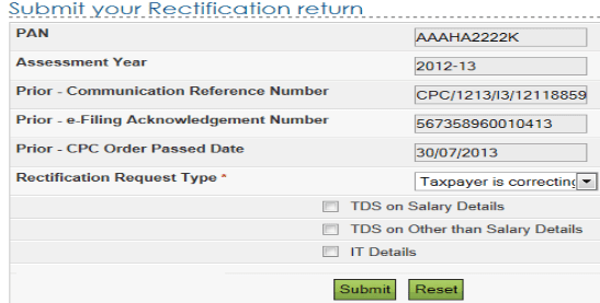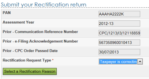 For Electronic returns filed and processed at CPC, only online rectifications