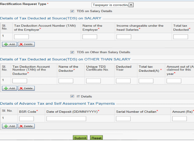 submit rectification requests with correct particulars of TDS/tax claims for
