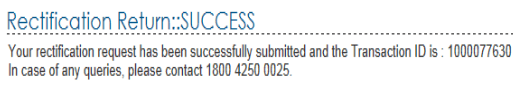 9 – On successful submission, following message is displayed.